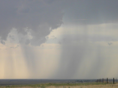Morning discussion led to the conclusion that we need to head toward eastern Kansas. However, mother nature always turns on us! We ended up traveling the opposite direction to chase along a dry line in the midst of the Oklahoma and Texas panhandle. Storms had all the right ingredients to form. Dew points were in the 70's, temperatures reached close to 100 degrees Fahrenheit, heat index reached around 105 degrees. Storms didn't start firing until around 5 p.m. central time. Initiation was supposed to be around 20Z. A small single celled storm formed in the Oklahoma panhandle and we began chasing. The storm showed what seemed like a small couplet in the lower left corner, it soon dissipated. Storms in front of this dry line were firing and then dissipating, because of the weak shear environment. A tornado watch was issued around 7 p.m. central time. By this time we only had two more hours of chase time, and the storms weren't looking any good. The group made the decision to stop chasing for the evening and head to Dodge City, Kansas. Tomorrow the group plans to head North.